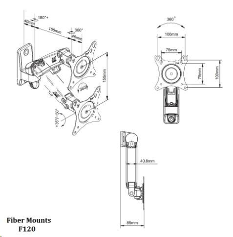 Technické údaje: minimální hmotnost obrazovky 2kg maximální hmotnost obrazovky 7kg podpora VESA standartu 75x75 a 100x100 (rozšíření za příplatek až na 200x200) na obrazovky 15" až 37" otočný do stran +/- 75° náklon +35° / -50° minimální vzdálenost od zdi 85mm maximální vzdálenost od zdi 283mm výškové nastavení obrazovky 155mm horizontální i vertikální otočení obrazovky systém vedení kabeláže velmi snadné polohování obrazovky nastavení tuhosti chodu TOP kvalita nádherný design v černém nebo chromovém provedení záruka 5 let Držák podporuje VESA standardy: VESA 75x75 VESA 100x100 VESA 200x100 - za příplatek VESA 200x200 - za příplatek.