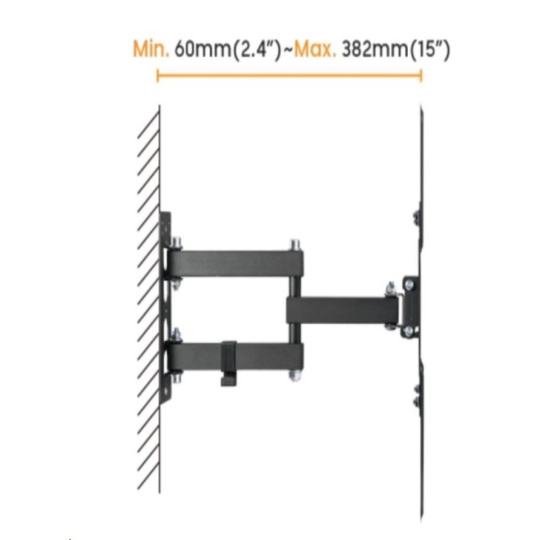 Výsuvný nástěnný držák LPA68-443 je určen pro instalaci TV s plochou obrazovkou s úhlopříčkami od 23“ do 55“. Má robustní výsuvnou konstrukci, díky níž unese TV o hmotnosti až 30 kg, zároveň je možné nastavit vzdálenost TV od stěny v rozsahu 60 mm až 382 mm. Samozřejmostí je pak také velký rozsah polohování. Držák umožňuje snadné naklápění TV v rozsahu +3°~-10° a natočení do stran v rozsahu +90°~-90°, což zaručuje pohodlné sledování z libovolného místa v místnosti. Integrovaná svorka na kabely udržuje kabely uspořádané a chráněné.