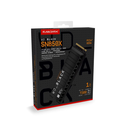 WD BLACK SSD NVMe 1TB PCIe SN850X Powered by SanDisk, Gen4, (R:7300, W:6300MB/s), Chladič