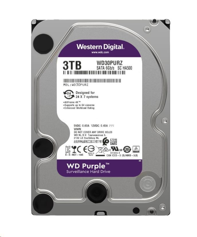 WD PURPLE WD33PURZ 3TB, SATA III 3.5", 256MB, 175MB/s, Low Noise, CMR