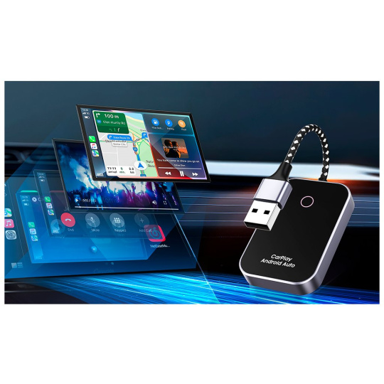 WG GoWireless! adaptér převádí vaše kabelové připojení CarPlay nebo Android Auto na bezdrátové připojení. Po připojení adaptéru do USB portu vašeho vozidla stačí pouze zapnout Wi-Fi na vašem mobilním zařízení a připojit se k vozidlu bez nutnosti kabelového propojení. Užijte si pohodlí a bezproblémovou navigaci, hudbu a hands-free hovory – vše bez zbytečného zamotávání kabelů.