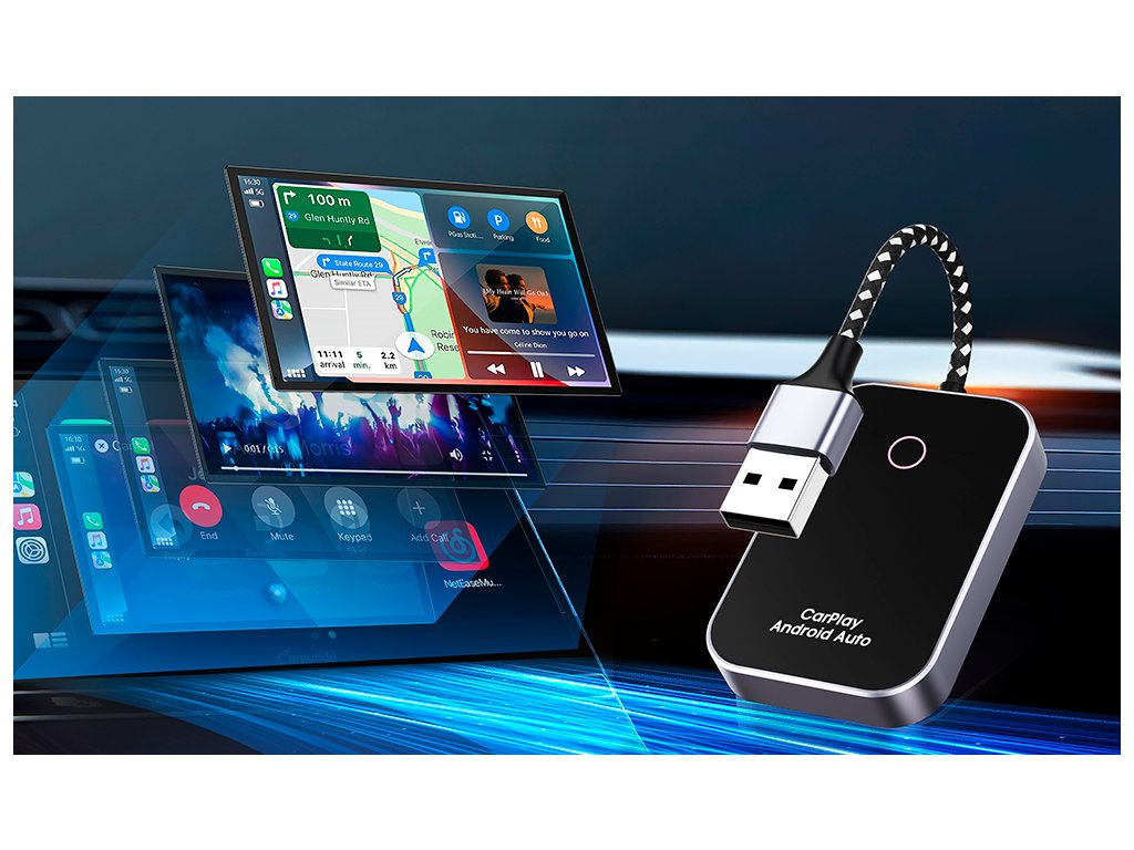 WG GoWireless! adaptér převádí vaše kabelové připojení CarPlay nebo Android Auto na bezdrátové připojení. Po připojení adaptéru do USB portu vašeho vozidla stačí pouze zapnout Wi-Fi na vašem mobilním zařízení a připojit se k vozidlu bez nutnosti kabelového propojení. Užijte si pohodlí a bezproblémovou navigaci, hudbu a hands-free hovory – vše bez zbytečného zamotávání kabelů.