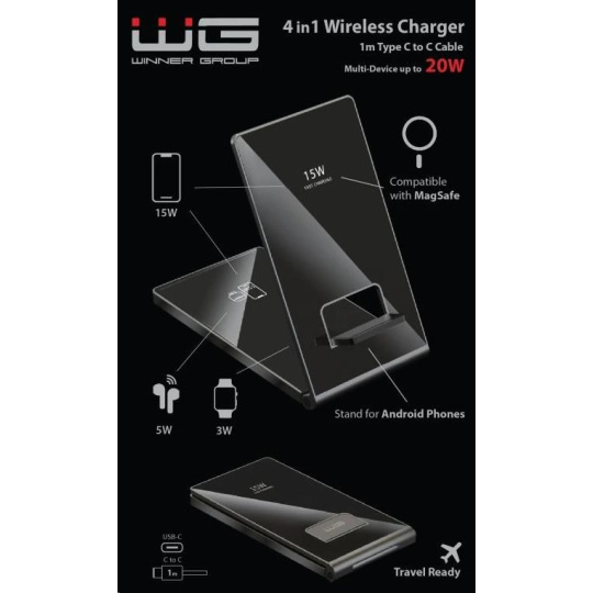 Bezdrátová nabíječka WG36 4in1 FAST MAGNET (2x15W+5W+3W) - černá