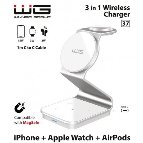 Získejte pohodlí a rychlost nabíjení se bezdrátovou nabíječkou WG37 3in1 FAST MAGNET. Objednejte si ji ještě dnes a užijte si jednoduchost nabíjení ve stylu!