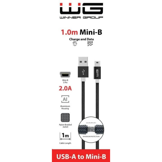 WG - Datový kabel USB Mini-B (5 pins)-USB-A / 1m / nylon braided / black