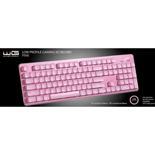 WG - Herní klávesnice WG, podsvícena, drátová, růžová