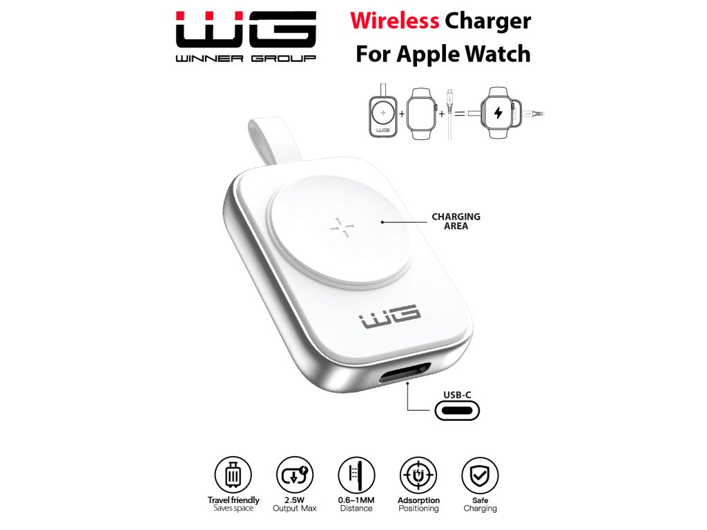 WG - Nabíjecí magnetické zařízení s USB-C pro Apple Watch, bílo stříbrná