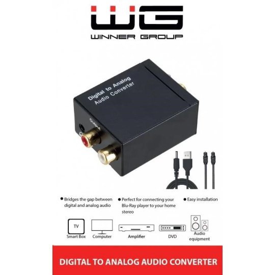 Praktický konvertor, který umožní připojit zařízení s digitálním audio výstupem (optický Toslink nebo koaxiální) k analogovým zesilovačům nebo reproduktorům s RCA vstupy. Ideální řešení pro propojení moderní techniky se starším audio vybavením.