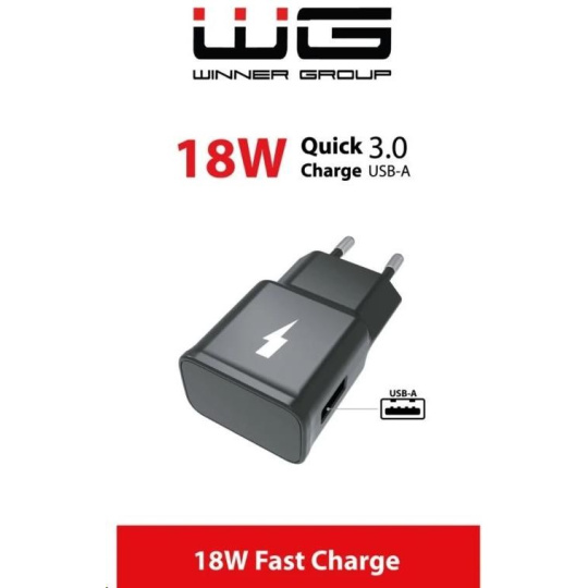 WG - Síťová nabíječka Fast 1x USB-A, Quick Charge 3.0, 5V-9V-12V, black