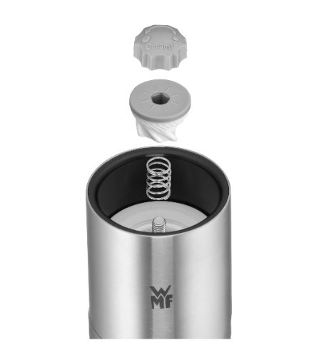- Prémiový materiál Cromargan®: Tělo mlýnku je vyrobeno z matné nerezové oceli 18/10, která je odolná proti poškrábání a otiskům prstů.