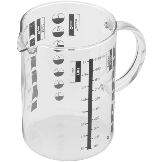 - Ergonomické ucho: Masivní rukojeť poskytuje bezpečný a pohodlný úchop i při plném zatížení odměrky.