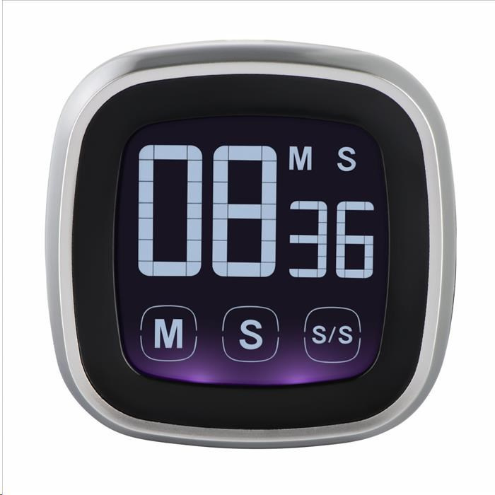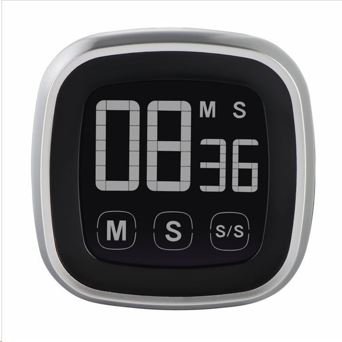 - digitální minutka se stylovým designem - nastavení času pomocí 3 dotykových tlačítek (až do 99 minut a 59 sekund) - funkce stopek a odpočítávání - tlačítko Start / Stop - hlasitý zvukový signál - velký 4-číslicový displej (XX: XX) - podsvícení - možnost postavení na vodorovnou plochu pomocí stojánku nebo připevnění na kovové magnetické povrchy pomocí magnetu - rozměry (V x D x Š): 7,2 x 7,2 x 2,4 cm - napájení: 2x Micro AAA (součást balení) - barva: černá/ stříbrná.