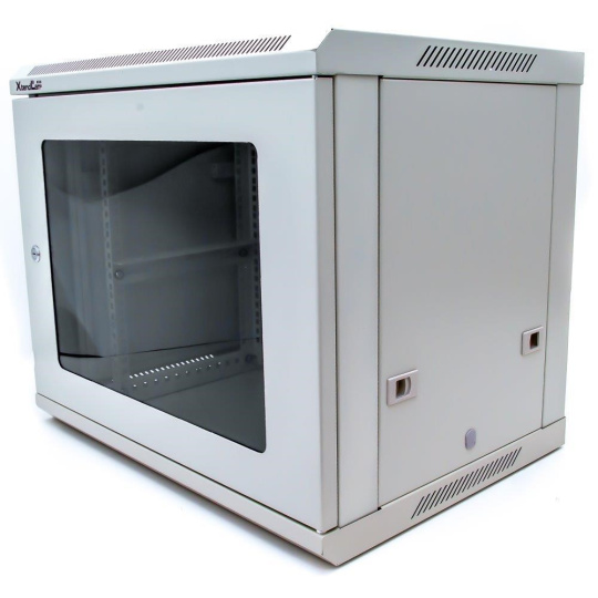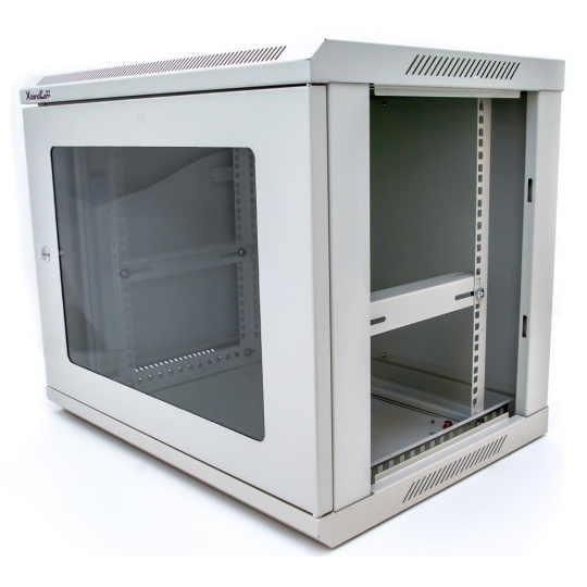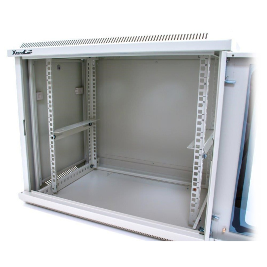 XtendLan 19" nástěnný rozvaděč 9U 600x450, nosnost 60 kg, skleněné kouřové dveře, svařovaný, šedý
