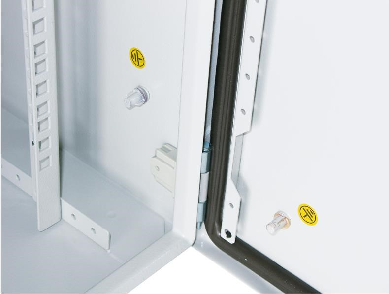 Venkovní nástěnný rozvaděč vyrobený z válcované oceli o tloušťce 1,5 mm.Třívrstvá povrchová úprava. Provedení: dveře - plné, otevíratelné o 110°, zaměnitelný směr otevírání, těsnění z pěnového polyuretanu zádní kryt - plný boční kryt - plný horní kryt - plný