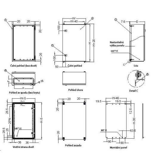 - tloušťka montážního panelu 2,5mm, válcovaná ocel