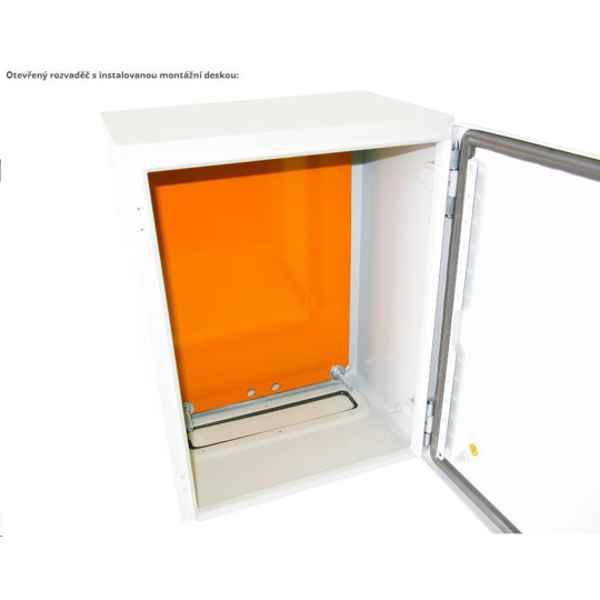 Univerzální rozvaděč, IP66, ocelový, šedý. Třívrstvá povrchová úprava (fosfátování, máčení v základním laku, práškový lak), zaměnitelné dveře, pevná konstrukce. Odnímatelný kryt kabelového průchodu. Rozvaděč je vyroben z válcované oceli o tloušťce 1,5 mm. Standardy: IEC60529, EN60529/10.91, GB4208-93 Provedení: dveře - plné, otevíratelné o 110 stupňů, montáž pravá nebo levá (uživatelsky zaměnitelné otevírání) zádní kryt - plný boční kryt - plný horní kryt - plný montážní deska: