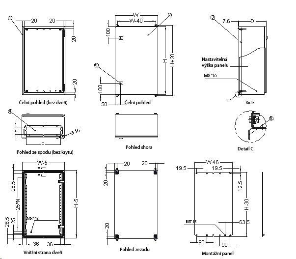 - tloušťka montážního panelu 2,5mm, válcovaná ocel