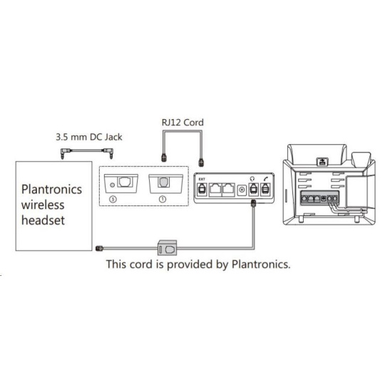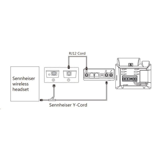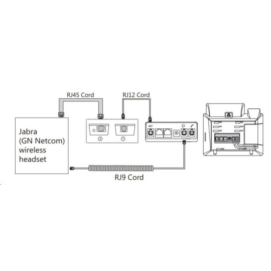Redukce pro připojení bezdrátové náhlavní soupravy značek Jabra, Plantronics a Sennheiser k Yealink telefonům. Redukci lze použít k telefonům Yealink SIP-T48S/T48G/T46S/T46G/T42S/T42G/T41S/T41P/T40G/T40P/T29G/T27G/T27P. Redukce snadno propojí Váš telefon s bezdrátovou náhlavní soupravou a umožní plné využití všech funkcí např. příjmutí / zavěšení hovoru tlačítkem na náhlavní soupravě. Součástí balení jsou všechny potřebné kabely RJ45 pro Jabra sluchátka, 3,5 mm jack pro Plantronics sluchátka a kabely RJ11, RJ12.