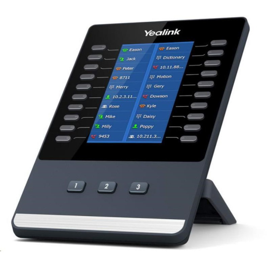 Yealink EXP43 barevný rozšiřující modul je ideálním řešením pro recepční, administrativní pomocníky a pracovníky kontaktních center a umožňuje snadno monitorovat kontakty a spravovat velké množství hovorů.