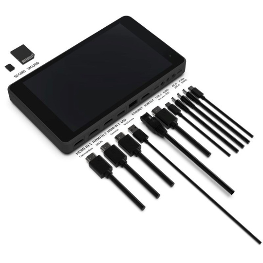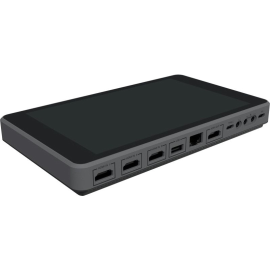 - Zařízení pracuje jako přepínač s řadou šablon obrazu v obraze stejně jako grafických vrstev. Obsahuje vestavěný kodér, který umožňuje živé streamování a může nahrávat na volitelné SD karty.