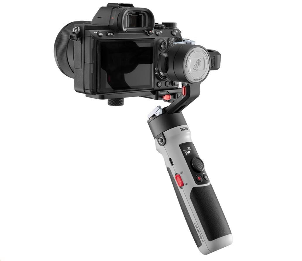 S hmotností pouhých 549 g je Crane M2S vysoce přenosný, stejně jako stabilizátor pro smartphone, ale má kapacitu pojmout i bezzrcadlovky, jako je Sony A7SIII, s kompaktními pevnými objektivy. Ve srovnání se standardní sérií Crane M2, tento nový stabilizátor má super lehké tělo v kombinaci se silnějšími motory a prodlouženými osami. Díky tomu je nezbytností pro filmaře a tvůrce obsahu na cestách.